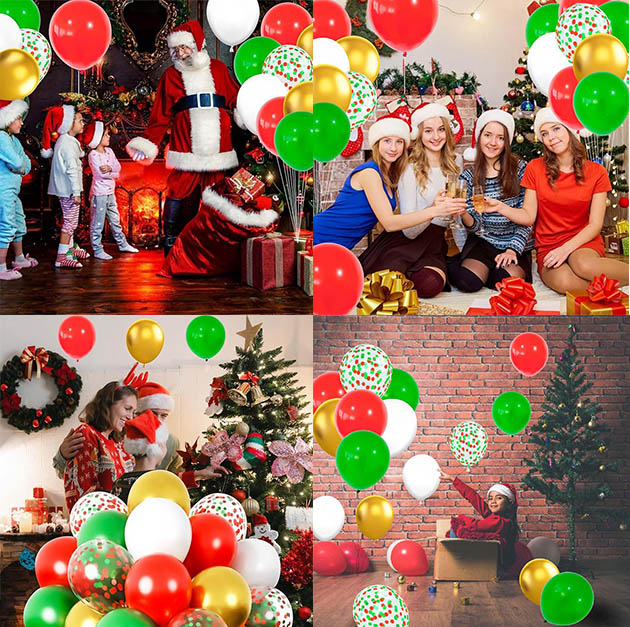 Niun®Рождестволық аралас түсті шарлар жиынтығынегізделген12inch латекс шарлары, Ал Рождестволық көрнекі белгілер дәл нақышталған: