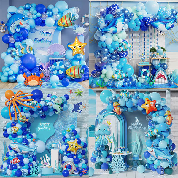 1. Су астындағы әлем армандаған түстерге толы. Ыстық ауа-райында шарлар гарланд жинағы акула фольга шарлары. Мультфильмнің теңіздегі ақшыл парақтарының үйлесімі балалармен өте танымал. Туған күн кешшілері немесе сыртқы әрекеттер үшін бе, әлдеқайда, әшекейлеу шаршысына арналған шарлы фольга шарлары бар шарлы арка гирляндасын пайдалану өте жақсы таңдау.