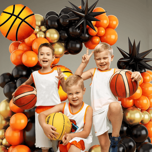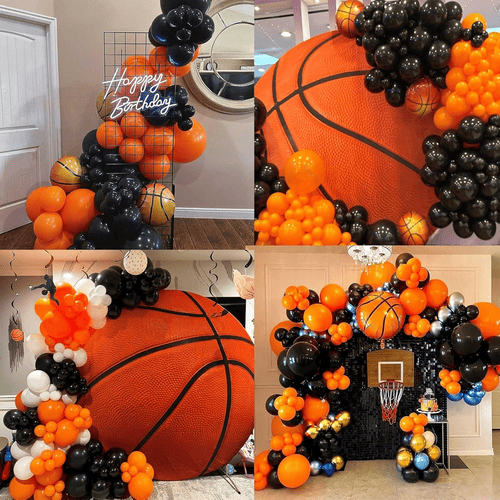 Баскетбол шарының гирлянд жинағы спорттық рухтың символы болып табылады. Ол бірнеше латекс шарымен және бірнеше фольга шарымен келеді. Баскетбол тақырыбына арналғандықтан, бұл жиынтықтың түстері негізінен қызғылт сары және қара болып табылады және әртүрлі қабаттарды жасау үшінметалл алтын латекс шарларда қосылады. Оның жалпы стилі өте тартымды, ол сіздің кешіңіздің атмосферасын бірден жақсарта алады.