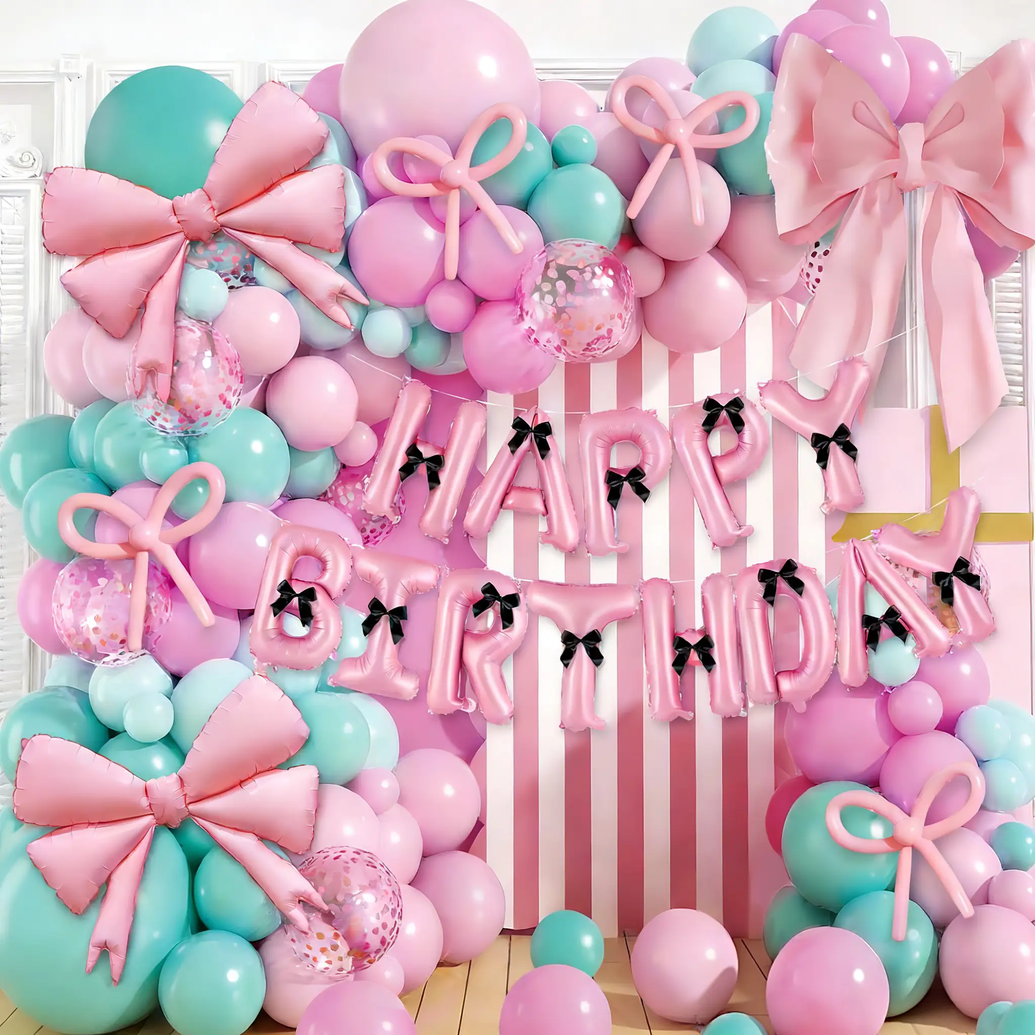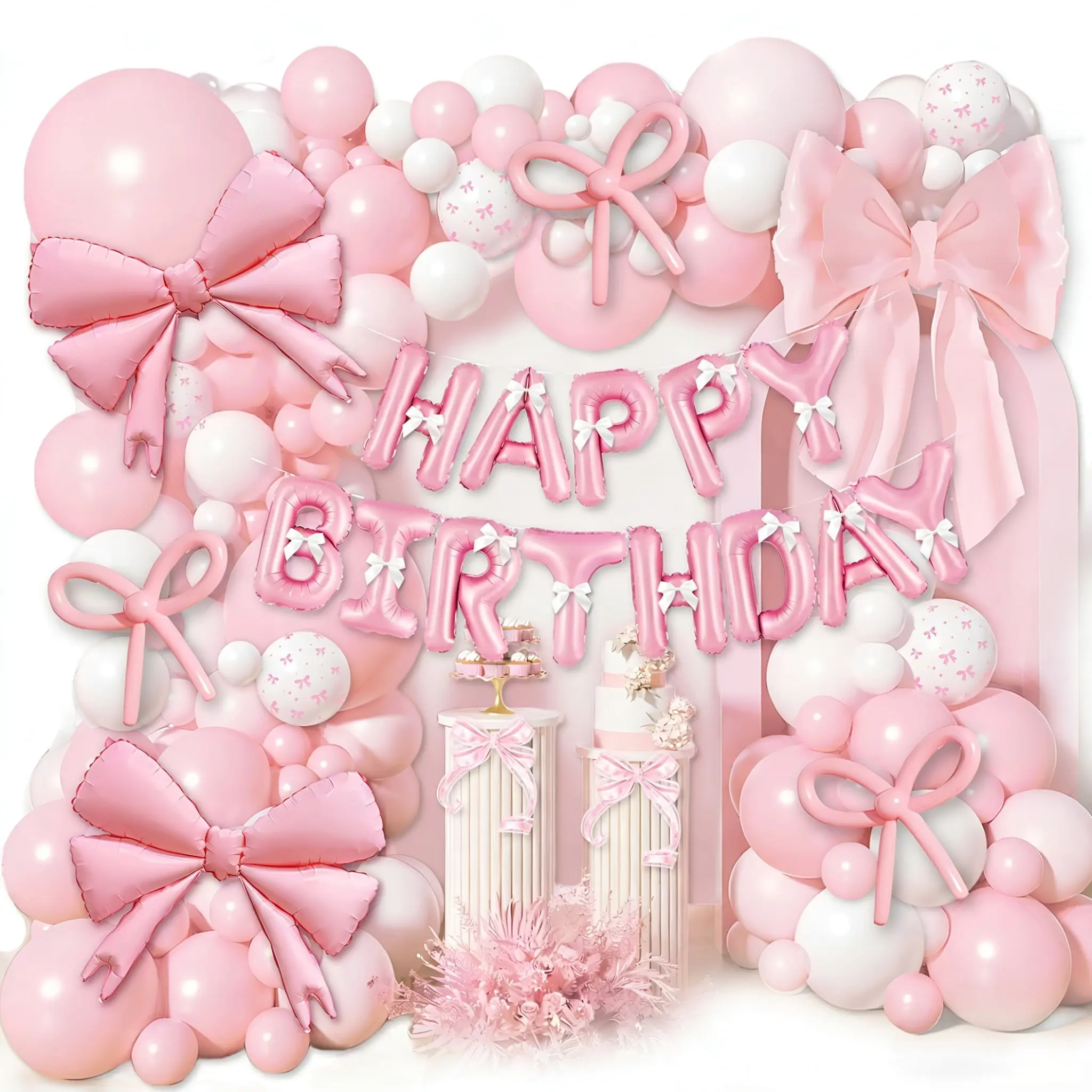 Бұл жиынтыққа 5 дюйм, 10 дюйм, 12 дюйм және 18 дюймдегі күңгірт қызғылт түсті шар, 5 дюймдік, 10 дюймдік күңгірт ақ түсті, фольгадан жасалған қызғылт түсті шар, күңгірт қызғылт 260 ұзын шар, лента садақ, желім нүктесі және шар безендіру жолағы кіреді.