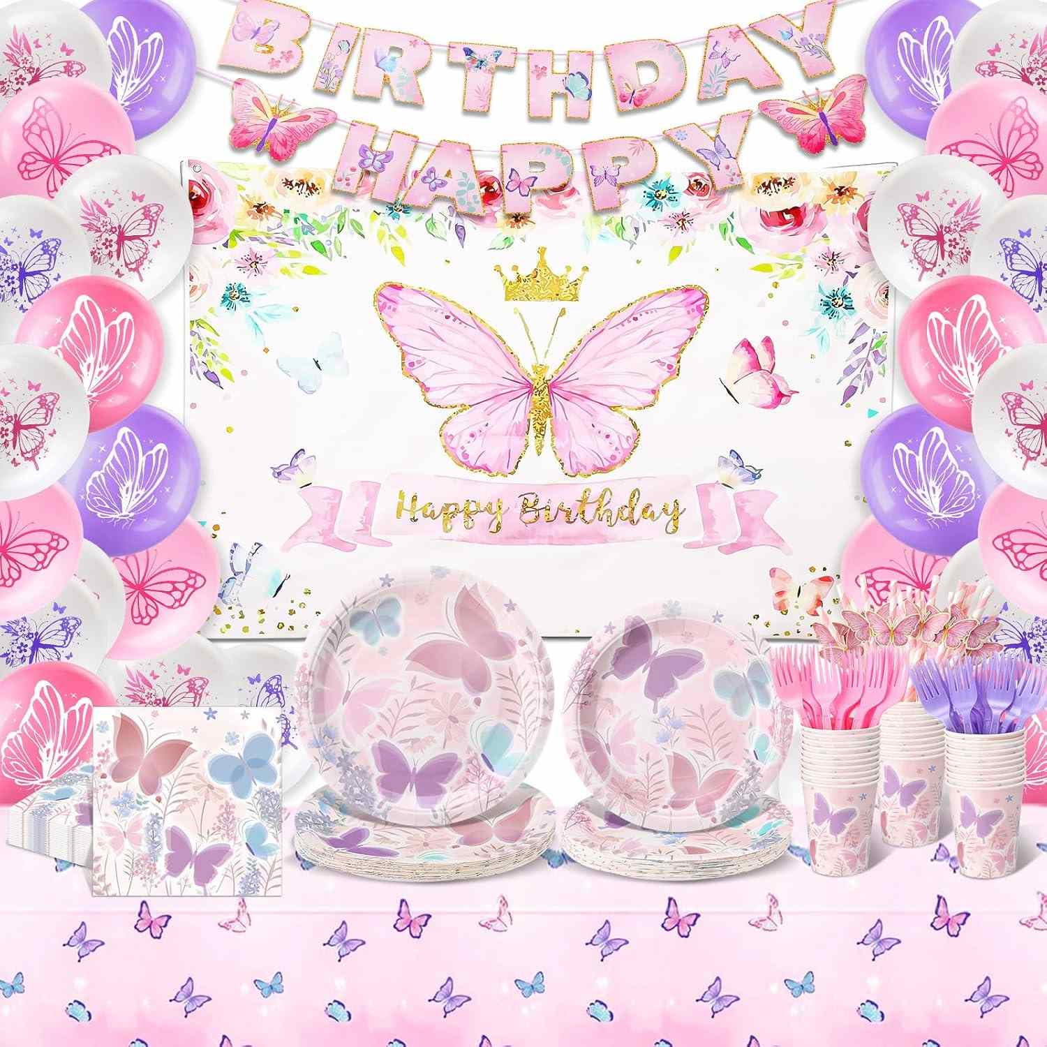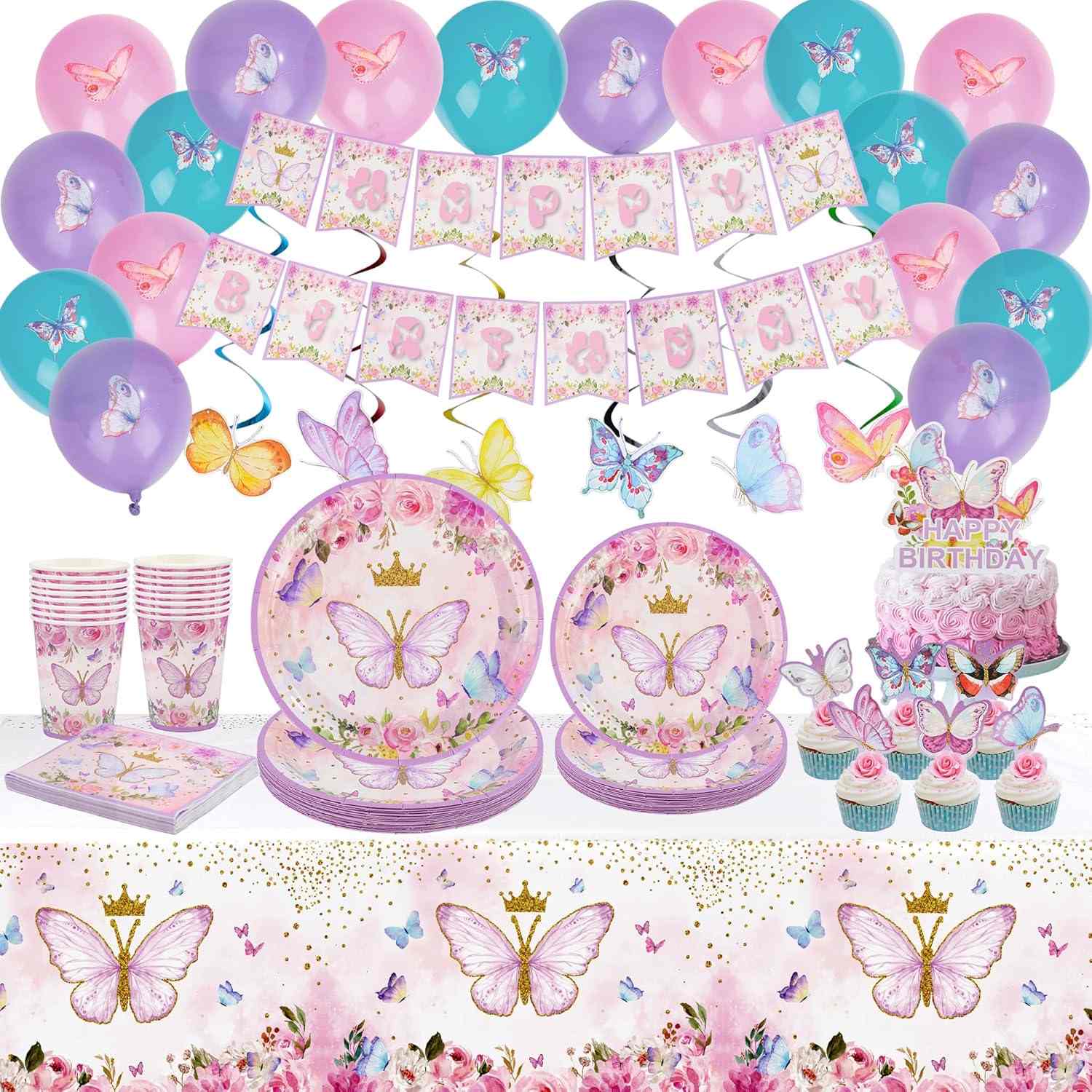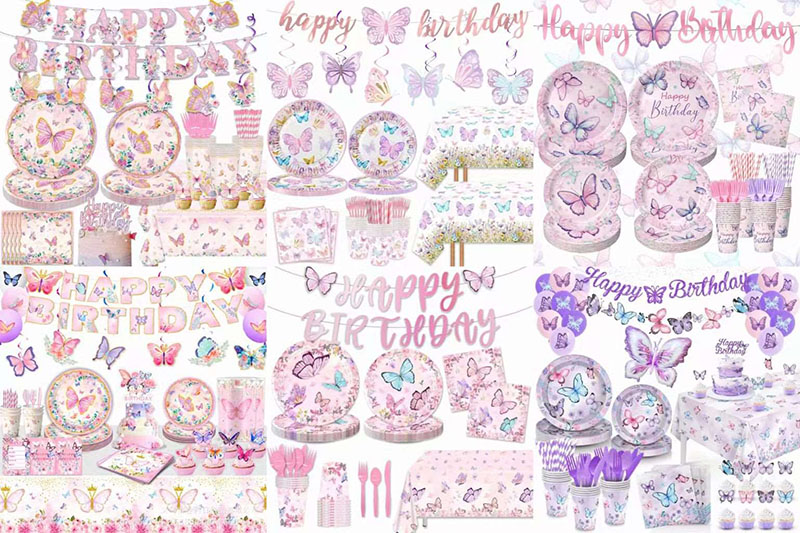 Мерекелік декордың тамаша нұсқасы - көбелектерге арналған дастархан жинағы. Майлықтар, қағаз табақтар, қағаз шыныаяқтар, шанышқылар және пышақтар кіреді. Әр бөлікте көбелектердің бөліктері көрсетіледі.