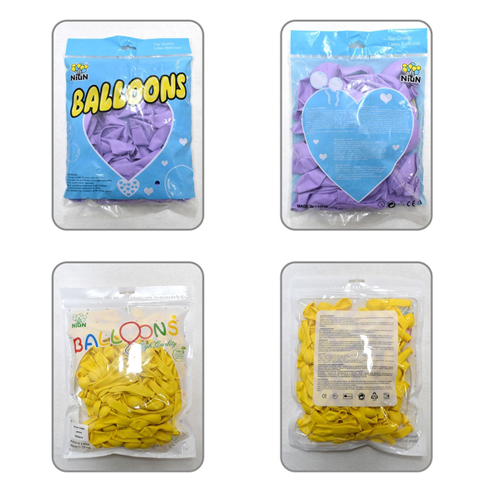 NiuN® шарлар фабрикасының өз бренді бар, сонымен бірге өз қаптамамызды әзірледі, конфетти латекс шарлары туралы бізде екі түрлі қаптама бар, суретте көрсетілгендей, біреуі көк сөмке, екіншісі ақ сыдырма қап, сіз өзіңіздің сүйікті қаптамаңызды таңдай аласыз. Сонымен қатар, егер сіздің тапсырысыңыздың саны 20000 сөмкеден асса, біз сіздің логотипіңізге сәйкес орауыш қаптардың дизайнын қолдаймыз. Біз логотиптің әдемі және сіздің бренд имиджіңізге сәйкес келуін қамтамасыз ету үшін сіз ұсынған логотип файлына және орауыштың жалпы стиліне сәйкес кәсіби дизайнды орындаймыз. Дизайндың бірінші жобасы аяқталғаннан кейін біз оны сізге электрондық пошта немесе онлайн байланыс құралдары арқылы жібереміз. Сіз өзгертулер бойынша ұсыныстар бере аласыз. Біздің дизайнерлік команда оны сіздің пікіріңізге сәйкес реттейді, оның ішінде түс сәйкестігі, логотип өлшемі мен орналасуы және т.б., дизайн жоспары толығымен қанағаттандырылғанша, содан кейін жаппай өндіріс жүзеге асырылады.