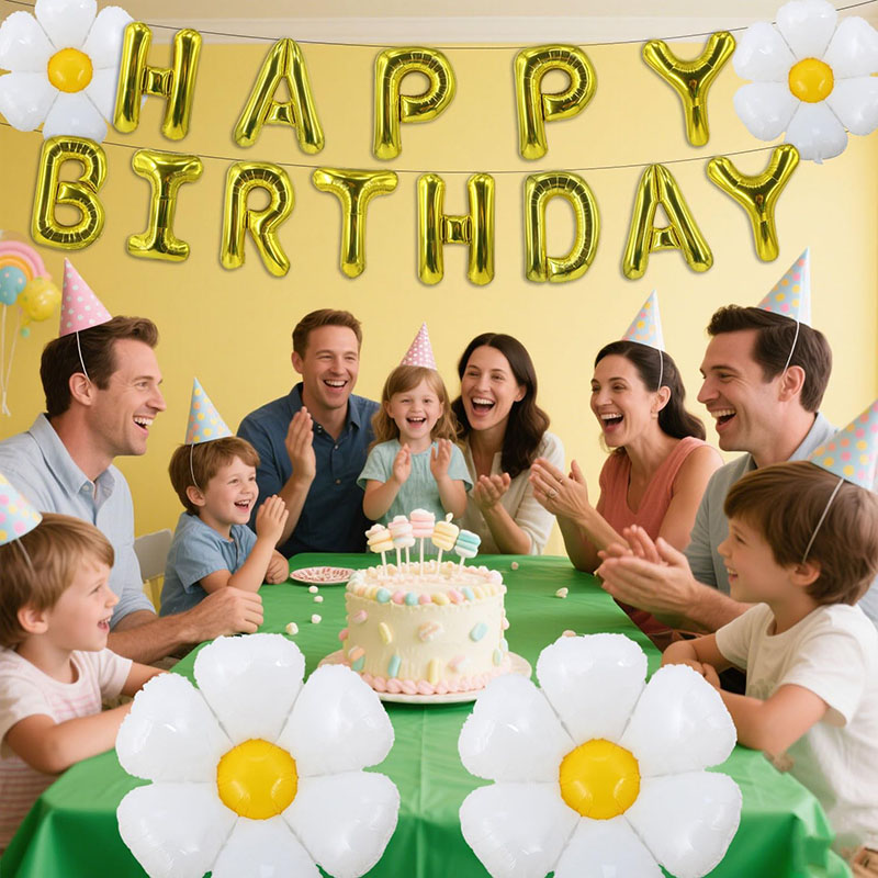 Дейси фольга допты кәмпиттер сериялары - бұл стильді Daisy партиясының әшекейлеуі үшін тамаша таңдау. Бұл түрлі-түсті дейлер шарларын үй ішінде немесе ашық ауада қолдануға болады және ботаникалық гүлді кештер, тропикалық жазғы кештер, туған күндер, бакалаврлар, травультеттер, кластар, класс кездесулері, шырша әшекейлері, балалар душтары және басқа да мерекелер. Сондай-ақ, оларды үйдің атмосферасын жақсарту және қуанышты атмосфера жасау үшін оларды мерекелік әшекейлер ретінде пайдалануға болады. Оларды басқа шарлармен шығармашылық және шығармашылық көрініс үшін де біріктіруге болады.