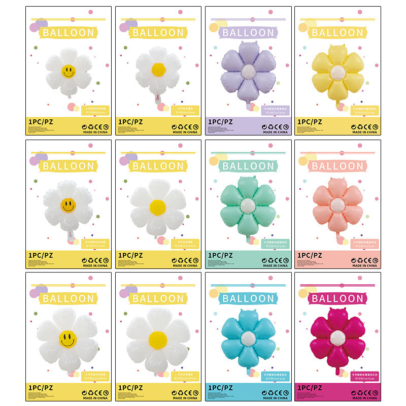 Дейзи пішінді фольга шарлары қайта өңделеді және тегіс және анықталмаған. Сатып алғаннан кейін оларды өзіңіз қалағандай, ауа немесе гелиймен үрлеуге болады.