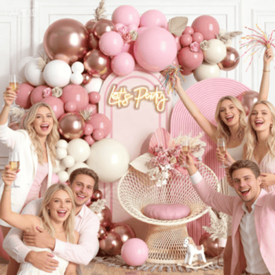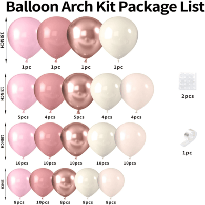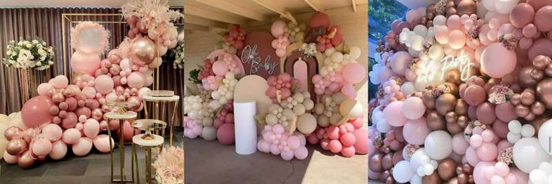 Шаңды қызғылт шардың кішкентай жинағы:Бұл шағын жинақ 50-ден 80 данаға дейін қызғылт шарлардан тұрады. Жиынның қабаттау әсерін жақсарту үшін ақ, өрік және мөлдір шарларды қосуға болады. Оларды толтыру үшін гелийді пайдаланыңыз, содан кейін байлау үшін таспаны пайдалана аласыз, содан кейін оларды ауада қалқып жіберіңіз.