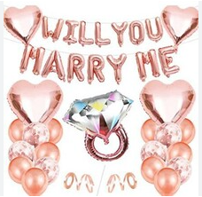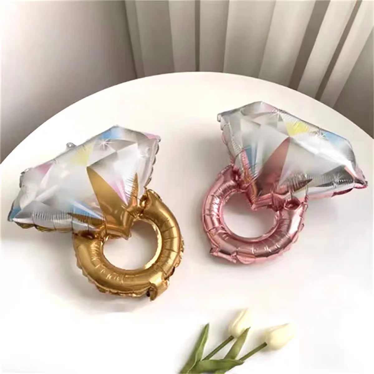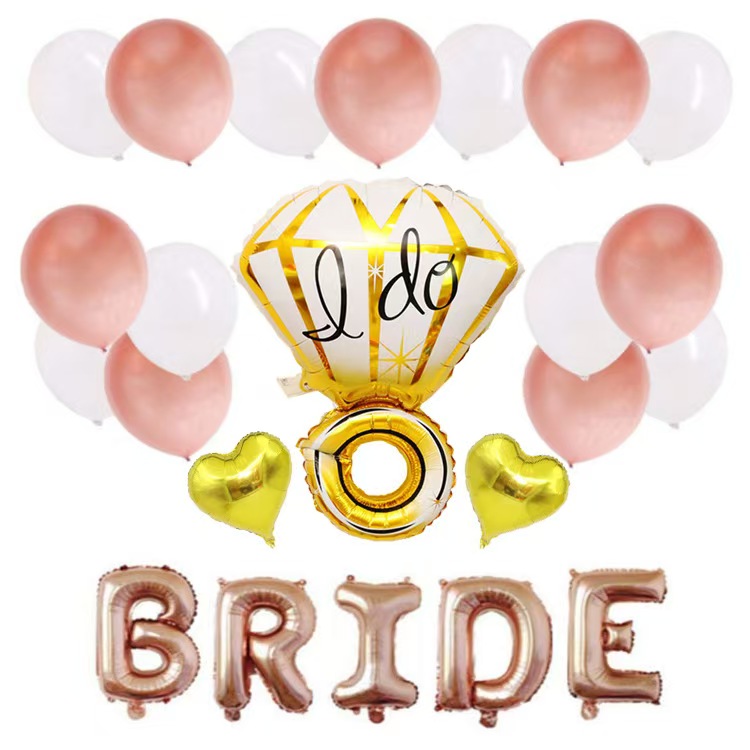 Костюм стилі негізінен гауһар тасты сақина фольга шарларынан жасалған, жұлдызды фольга шарларымен және тақырыптық дөңгелек шарлармен үйлеседі, ал жалпы сәйкестік қарапайым және атмосфералық. Сонымен қатар, ол жеке теңшеуді қолдайды және мойындау мен ұсыныс атмосферасын одан әрі нығайту үшін I DO және ME MARRY сияқты әріпті фольга шарларын қосу сияқты қажеттіліктерге сәйкес шарлардың түрі мен санын реттей алады.