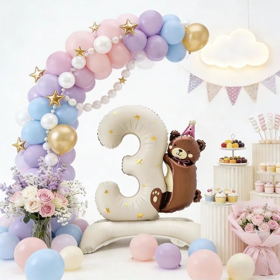 Theфольгадан тұратын сандық шарларәшекейлерде арнайы үрлемелі негіздер бар. Олар мықтап тұрады. Қосымша қолдау қажет емес. Орналастыру икемді және тегін. Олар көптеген түстерде келеді. Түстерге көк, қызғылт және күміс кіреді. Сан мәнерлері аяқталды. Олар 0-ден 9-ға дейінгі сандарды қамтиды. Олар әртүрлі тақырыптарға жақсы сәйкес келеді. Тақырыптарға туған күн жасы мен мерейтойлық мерекелер кіреді.