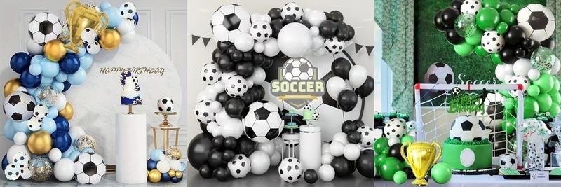 2.Егер сіз арнайы шар гирлянд жиынтықтарын алғыңыз келсе, футбол тақырыбына бірнеше милярлық фольга шарларын немесе бірнеше милярлық нөмірді немесе әріптік шарларды қосуға болады, содан кейін қалаған шар түстерін сүртіңіз, егер ұлдар көк түсті қойса, қыздар қызғылт түсті түстерді қойса, төмендегі суретті тексеруге болады: