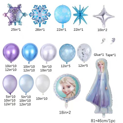 «Мұздатылған» фильмінің бүкіл әлемде танымал болуына байланысты бұл жиынтық та үлкен нарыққа ие. Осы шар доғасы жиынтығынан басқа, біз сондай-ақ мұздатылған тақырыптық латекс шарының шағын жиынтығын, мұздатылған тақырыптық фольга шарының шағын жиынтығын және т.б. шығардық.
