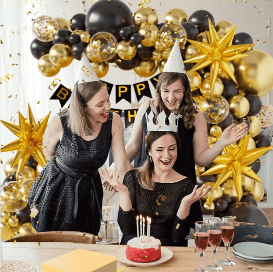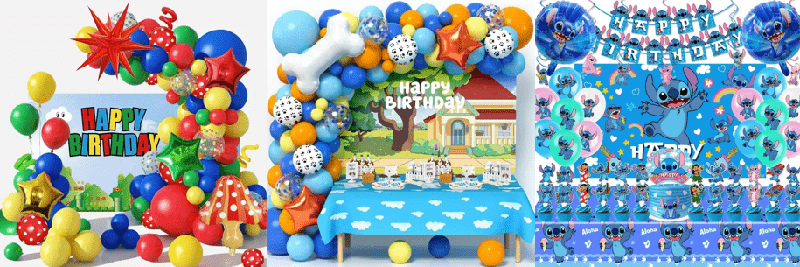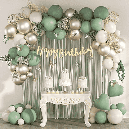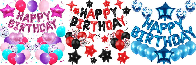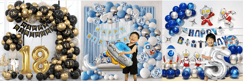 Негізгі стиль - бақытты туған күн - латекс шарлары, олармен бірдей немесе қосымша түспенТуған күн туралы халық фольга шарларынемесеНөмірдің сандық шарлары. Классикалық стильдерде Macaroon ұнтағы гельі бар, қызғылт түсті қызғылт туған күн құтты болсын, қызғылт ақжелкен ақжелгі шар, қара латекс шарлары алтынның фольга шарлары. Латекс шарлары шарлар тізбегіне еніп, қабырғаға немесе төбеге ілініп, визуалды орталық сияқты фольга шарлары және қарапайым және лента безі сияқты, қарапайым және құрылымды тараптың атмосферасын тез құруға арналған шағын лента безі бар.