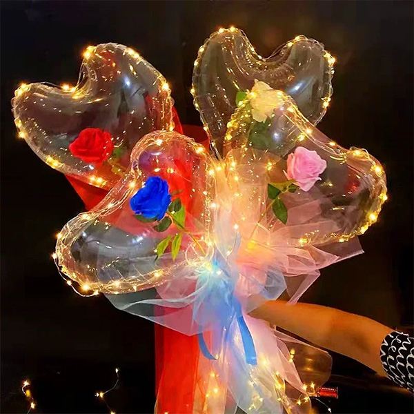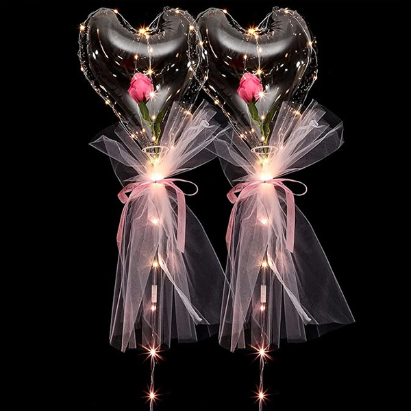 Бұл жүрек үшін Бобо шарлары раушанының жиынтығы, бізде бобо шарлары мен жеңіл қорап бар. Шарлы әуе шыбықтары 35 см өзенден, шардың шыныаяқынан және кішкене пластикалық түтіктен тұрады. Жарық диодты шамды 2 AA батареясымен қуаттайды, батареялар жеткізілім көлеміне кірмейді. Жеңіл қорап сары жарық диоды мен түс жарықдиодты шамдарға бөлінеді. 3 жарықдиодты жыпылықтаған параметрлер жылдам жыпылықтауын, баяу жыпылықтауын және жыпылықтамауға мүмкіндік береді. Керемет көп топтық әсер алу үшін шардың параметрлерін өзгертіңіз.