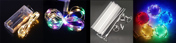 Жарықдиодты жарық белдеулері, пластикалық түтік, шар, қауырсын |