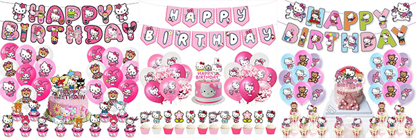 Сәлем Китти шарлары Тақырыптар Тақырыптық партиялық материалдарға мерекелік кештер үшін арнайы безендіру жиынтығы, жылы, көңілді және мерекелік атмосфера жасауға көмектесетін толық әшекейлер жиынтығы бар.