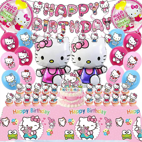 Бұл сәлем, латикалық шаяндар партиялық партиялық партия жиынтығы туған күніне арналған баннерден, тортпен безендіруден, Сәлем Киттиге арналған латикалық латикалық шарлар мен шыныаяқ безендіруден тұрады. Осы пакеттегі барлық әшекейлер жоғары сапалы материалдардан, ашық түстермен және сүйкімді үлгілерден жасалған. Материал қалың және оңай емес, бұл іс-шараны мерекелеу кезінде пакеттегі әшекейлердің жақсы күйде қалуын қамтамасыз ете алады. Бұл мереке, туған күн кеші немесе көңілді кеш ме, ол мультфильмдер Тақырыптық партия жиынтығы өте жақсы.