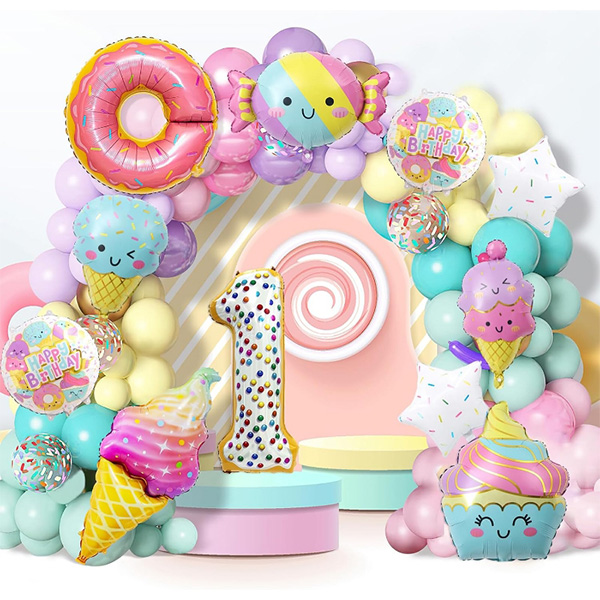 Балмұздаққа арналған тақырыптар, балалар шомылдыру рәсімінен өту кештері үшін өте ыңғайлы. Туған күн кешін және сіз өзіңіздің туған күніңізді және басқа арнайы іс-шараларды әдемі балмұздақ шаршымен түрлі-түсті латекс шарлары бар безендіріңіз. Кешті таңқалдырыңыз.