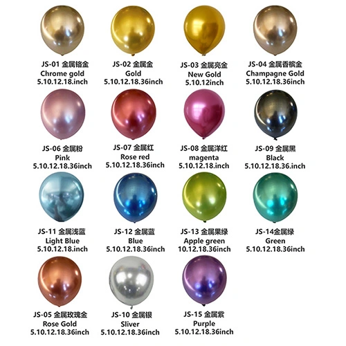 Металл шарлар:Жылтыр айна қабаты және көздің жауын алатын текстуралары мен түстері бар бұл мерекелік безендірулерде, тапсырыс бойынша басып шығаруда және т.б. қолдануға арналған ең әмбебап латекс шарлары.