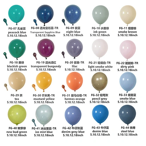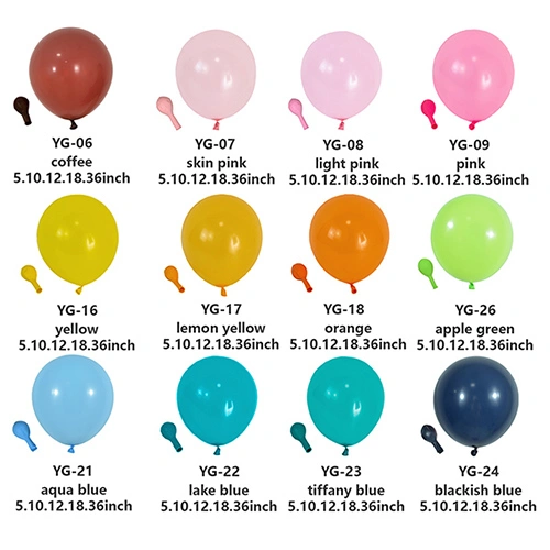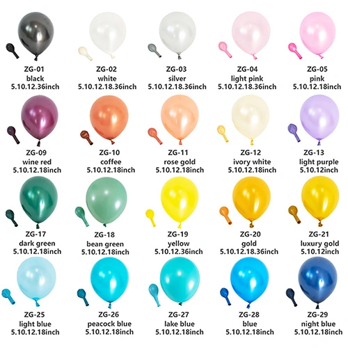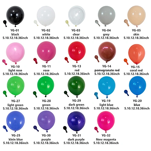 Латекс шарларын өндіруші және жеткізуші ретінде біз дүние жүзіндегі көтерме сатушыларға, іс-шара компанияларына және бренд иелеріне шар өлшемдері мен түстерінің толық спектрін ұсынамыз. Стандартты түсті мерекелік шарлардан бастап тапсырыс бойынша басып шығарылатын шешімдерге дейін біздің өндірісіміз көлемді талаптарға да, жоғары сапа стандарттарына да жауап беруге арналған.