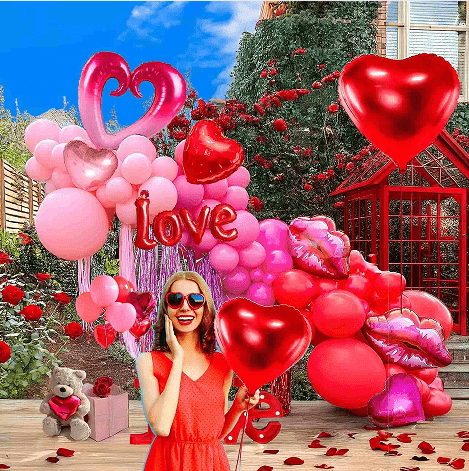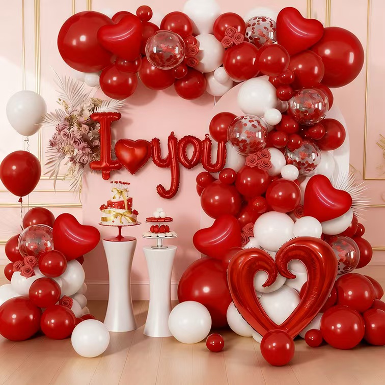 Әулие Валентин күніне арналған романтикалық пакет: ерін шары+махаббат шары+конфетти латекс шары+лента желім нүктесі, үйлену тойына, үйлену тойына, мойындау көріністеріне қолайлы