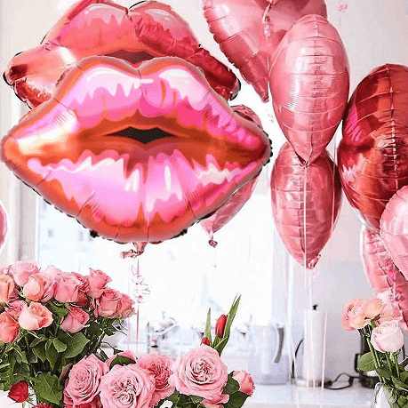 Бакалавр кеші пакеті: қызыл ерін шары+әріптік шар+түймелік фон, басты әйел кеші, үйлену тойының алдындағы атмосфера