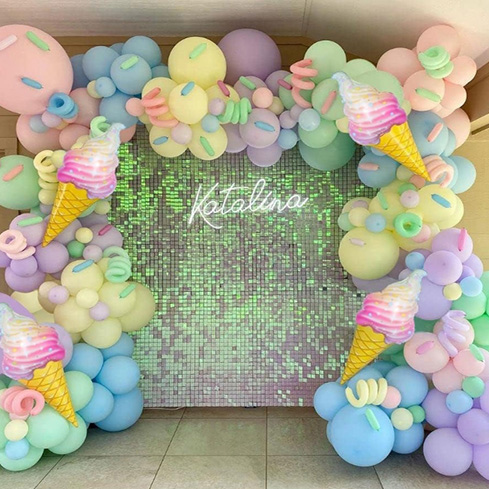 Macaroon Creat Crand Carron Barn Chit құрамында әр түрлі түстер мен өлшемдер, мака-көк, мака-көк, мака-көк, мака-жасыл және мака күлгін, сондай-ақ түрлі мака түстерінің және фольганың балмұздақ шарлары бар. Осы шарлар аяқталғаннан кейін олар шарлы тізбектер, желім, желім пункттері мен ленталар арқылы жиналған, желім, желім және ленталар, әдемі макаронның kqu кремді шарларымен жиналады. Түрлі-түсті макарон шырағының қабығы гарланды сіздің партияңызға немесе іс-шараңызға арнайы жасалған болуы мүмкін. Бұл ашық дастархандар, компания немесе отбасы партиялары, мектептер, демалушылар, мерекелік әшекейлер, мерекелік әшекейлер, гендерлік кештер, гендерлік кештер, гендерлік кештер, кілемдер, қыздар, қыздардың балмұздақтары, үйлену тойын, пастерлер үшін, пасха кешкі кештер. Кешке арналған Rinadow Salloon тақырыбын жасаңыз немесе кез-келген тақырыптық оқиға жасаңыз.