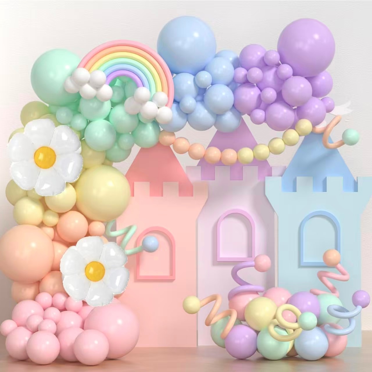Макаронның түрлі-түсті шарлары Гарланд аркасы жұмсақ және армандаған түстері үшін танымал. Бүкіл жиынтық макаронның 12 түстеріне арналған. Оның макароны қызыл, макарон көк, макарон күлгін және басқа түстер бар. Әр түс жаңа және романтикалық көріністі әкеледі.