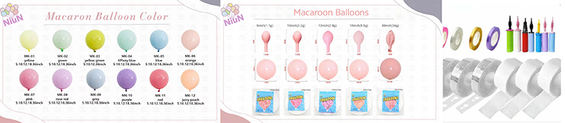 Latex Macaroon шарлары бір рет партиялық қолдану үшін жақсы. Мұқият қолдану арқылы оларды қысқа уақыт ішінде қайтадан қолдануға болады. Жинақтармен бірге фольга немесе металл шарларды оңай пайдалануға болады.