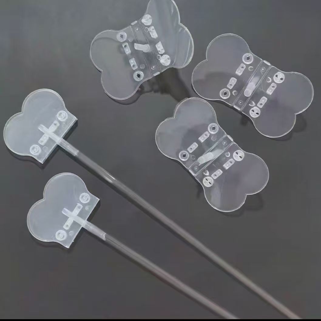 Пластикалық қысқыш таяқша қоршаған ортаны қорғайтын қатты пластиктен жасалған, қатты беріктігі бар, сынуы оңай емес, тұрақты құрылымы мен жақсы көтергіштігі бар, шағын фольга шарының корпусын тиімді ұстай алады және инфляциядан кейін тұрақсыз ауырлық орталығын болдырмайды. Беті тегіс және саңылаусыз, глобустың пленка қабатын сызып тастамайды және сонымен бірге белгілі бір қалыңдыққа ие және ұстау немесе ілу кезінде қатты сезінеді.