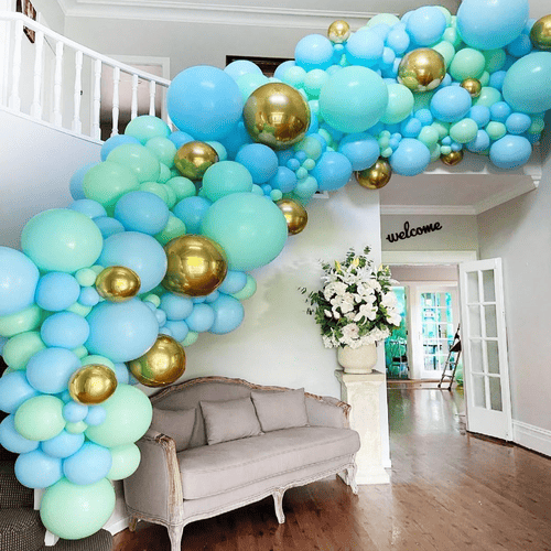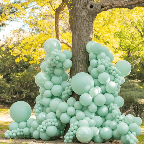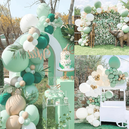 Жалбыздан жасалған шар гирляндиясынан тұрадыжоғары сапалы латекс шаржәне сәйкес аксессуарлар. Оның стилі жаңа және сәнді. Көктем мен жаз келген сайын бұл пакет барған сайын танымал бола бастайды. Адамдар бұл жинақты сатып алғанды және оларды туған күнінде, үйлену тойында, нәресте душінде және басқа кештерде қолданғанды жақсы көреді.
