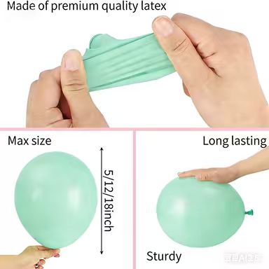 Біз Mint шарының гирляндиясы үшін ұсынатын латекс шарлары Оңтүстік-Шығыс Азиядан әкелінетін 100% шикі латекстен жасалған. Біз қолданатын табиғи материалдың арқасында шарлар балалар мен ересектер үшін мүлдем экологиялық таза және зиянсыз болады.