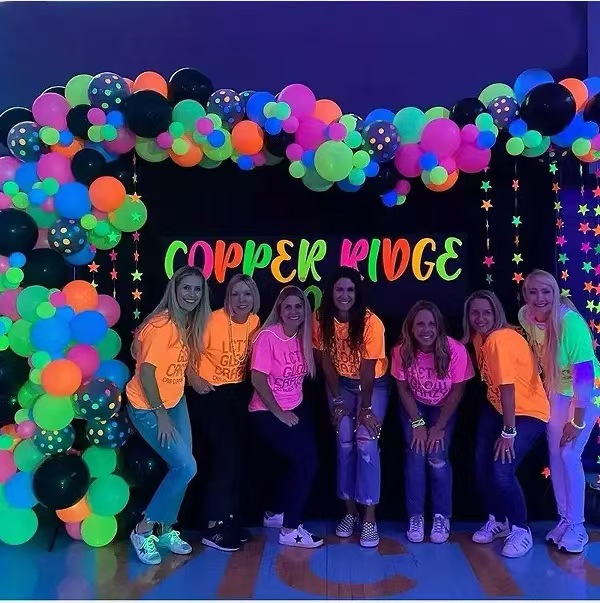 Неонды латекс шарын пайдалану, жақсы қаттылық, жарылып кету оңай емес, ағып кету оңай емес, толық бояу, неон әсері тұрақты, үйлену тойына, партиялық компанияға, белсенділік орналасуына және т.б.