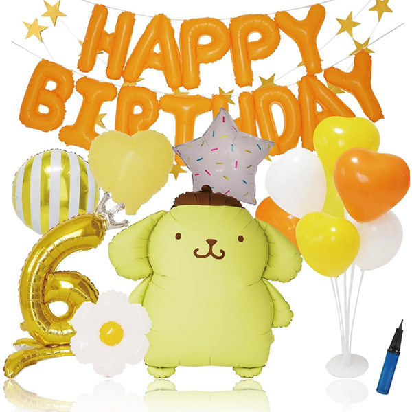Помпомпурин бастапқыда Қанагаваның алтын іздеуші, тірі сөмке болды. Ол Пудинг итімен, оның пуддинг итімен пудингке ашкөз болған кезде ұнның пайда болуына байланысты деп аталды. Санрио отбасын қосқаннан кейін оның иконикалық береті және жалқау мінезі тез жетедіТанымалдылықты танымал және бүкіл әлемдегі балалар жақсы көрді. Бұл помпомпуриннің фольга шламын жинайтын жинақ құрамында үш өлшемді помппомпурин фольга шарлары, помпомпурин басылған фольга шарлары мен жүрек пішінді фольга шарлары немесе жұлдыз фольга шарлары бар. NIUN® шарлары шығарған фольга шары жоғары сапалы фольгадан жасалған, ол берік және қайта пайдалануға болады, олар жеңіл және қайта пайдалануға болады, олар оңай емес және жабық және ашық безендіруге жарамды. Осы жинақты балаларыңызбен пайдалану партияны қызықты етеді және қонақтар мен балаларға бақытты етеді.