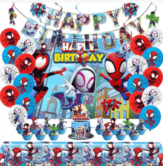 Spiderman Haroon Harloon Harland Cits бір аялдамалы партияның орналасуы арқылы әшекейлеуді шешеді. Онда түрлі шарлар, керек-жарақтар мен құралдар бар. Оны қосымша сәйкестендірмей жинауға болады. Бұл жаңа кәсіби партиялық әшекейлерді тез құруға және кешке орналасу тиімді болуға жарамды. Тағы бір тұтас. Шұңқырлар соймасы және мөлшері костюммен және мөлшері кәсіби түрде сәйкес келді, өрмекші адамның классикалық қызыл және көк түстері бар, өрмекші веб құрылымы, қара және ақ шарлар, ал үш өлшемді фольга шарлары, ал үш өлшемді фольга шарлары. Жиналыстан кейін сәйкес қателіктер туралы алаңдамай, бай қабаттары мен ерекше тақырыптары бар гүл шоқтарын безендіру қалыптасады.