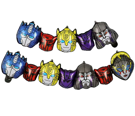 Transformers фольга шары - бұл Optimus Prime, Bumblebee және Megatron сияқты негізгі кейіпкерлердің таңғажайып пішіндері мен түстерін қайта жасайтын классикалық кейіпкерлерге негізделген көп функционалды кеш безендіру және интерактивті өнім. Өнімдер Q-нұсқасының тамаша жүйесі мен стандартты пропорцияларды азайту сериясын қамтиды, оның ішінде әртүрлі өлшемдері 18 дюймден 36 дюймге дейін, олар отбасылық кештерге, коммерциялық іс-шараларға, сыйлықтарға және басқа да жағдайларға жарамды. Өнім материалы қауіпсіз және уытты емес, сонымен қатар рөлдік бөлшектердің жоғары ажыратымдылығын қалпына келтіруді қамтамасыз ететін тағамдық қоршаған ортаны қорғауға арналған алюминий фольга материалын және озық басып шығару технологиясын қабылдайды. Бұл трансшекаралық саудада дифференциациясы да, бәсекеге қабілеттілігі де бар ыстық сатылатын жалғыз өнім.