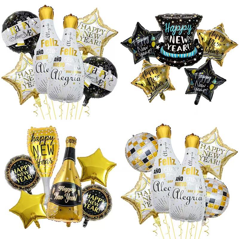 Жаңа жылдық жиынтығы туралы ойланыңыз. Оның шампан бөтелкелері сияқты фольга шарлары бар. Оған «2026» нөмірі шарлар, жұлдыздар сәндік шарлары және басқалар да бар. Негізгі түстер - қара-алтын немесе алтын-ақ. Бұл жаңа жылдық мерекелік көңіл-күйге толы. Ол оңай және салтанатты жаңа жылдық партияны оңай жасауы мүмкін.